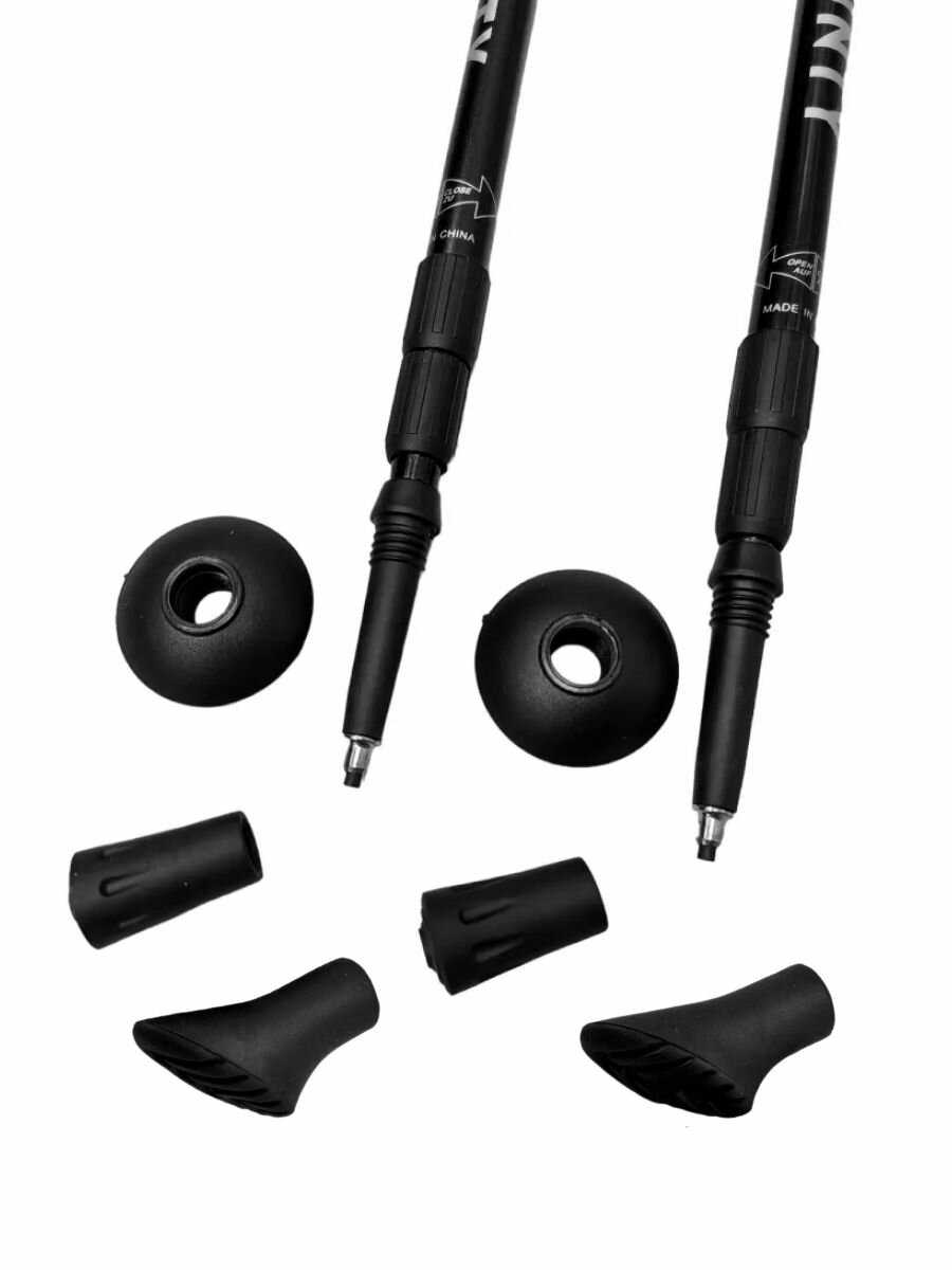 - + Внешне на палках повреждений/царапин нет, доехали в целости. Пока не опробовали, но на первый взгляд довольно прочные. Одного вида насадок положили аж 3 шт.