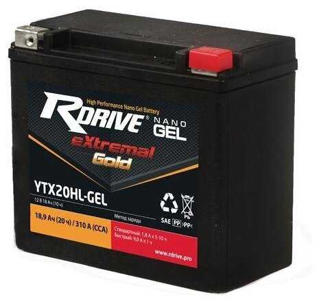 Лучшие цены сегодня на Мото аккумулятор RDrive eXtremal Gold NANO GEL YTX20HL-GEL
