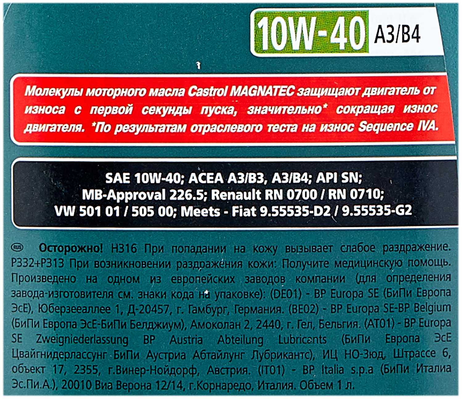 - допуски: VW 502.00/505.00; MB 229.3; GM-LL-B-025; Renault RN0700/RN0710