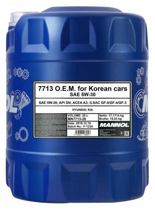 8.9/10 балловMannol 7713 O.E.M. for Korean cars / for Hyundai KIA 5W-30