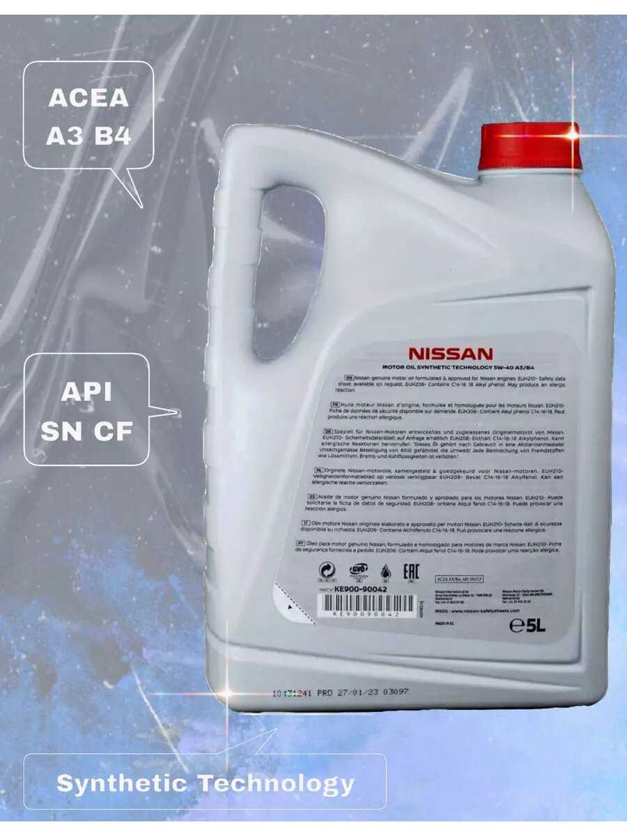 Nissan Motor Oil 5w40 Api Sm/Cf Синтетическое 1 Л Ke900-90032 (Мм86011)