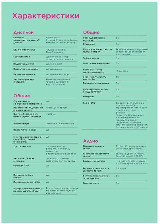 - - После двух дней работы пропало 50% пикселей с экрана одной трубки! Аккумуляторы идущие в комплекте самого низкого качества, заряда хватает на сутки в режиме ожидания! Нет возможности при разговоре по телефону перевести его из импульсного режима в тональный! Чтобы...