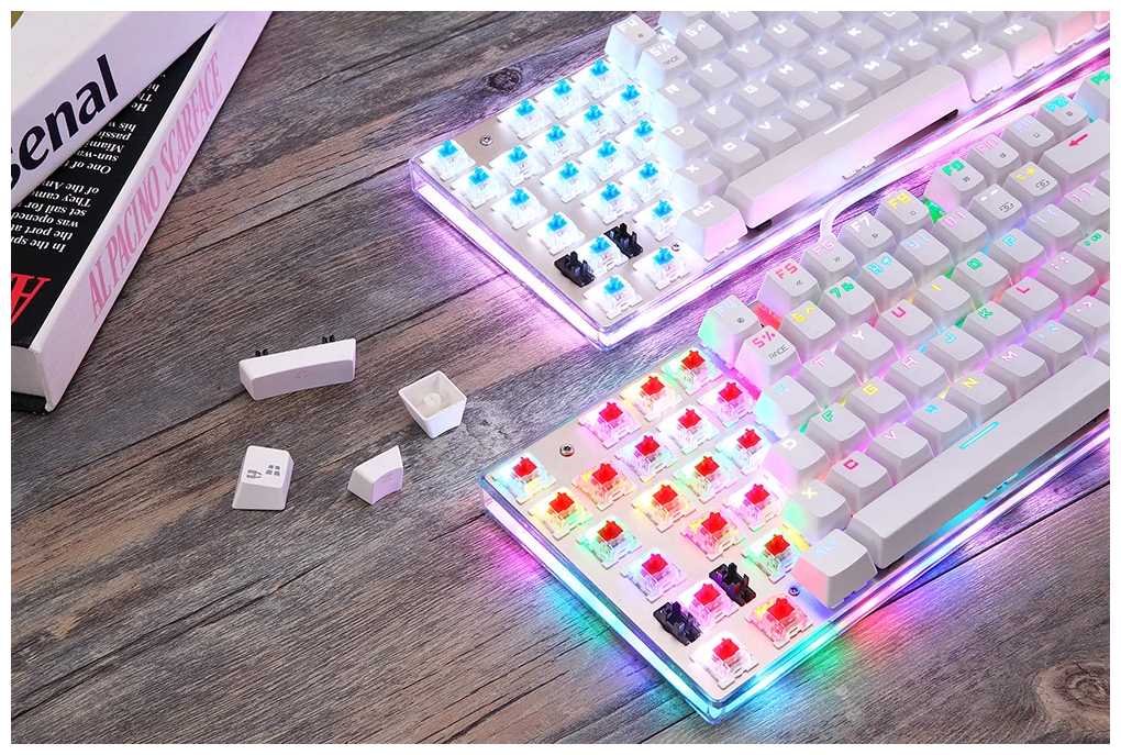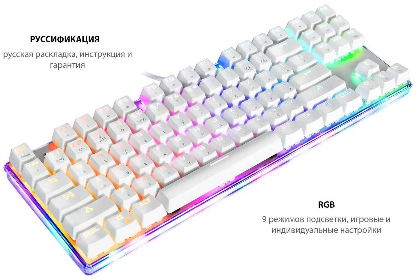 - + Механника. Классный звук и тактильная отдача. RGB подсветка с кучей цветов. Можно настроить как нравится