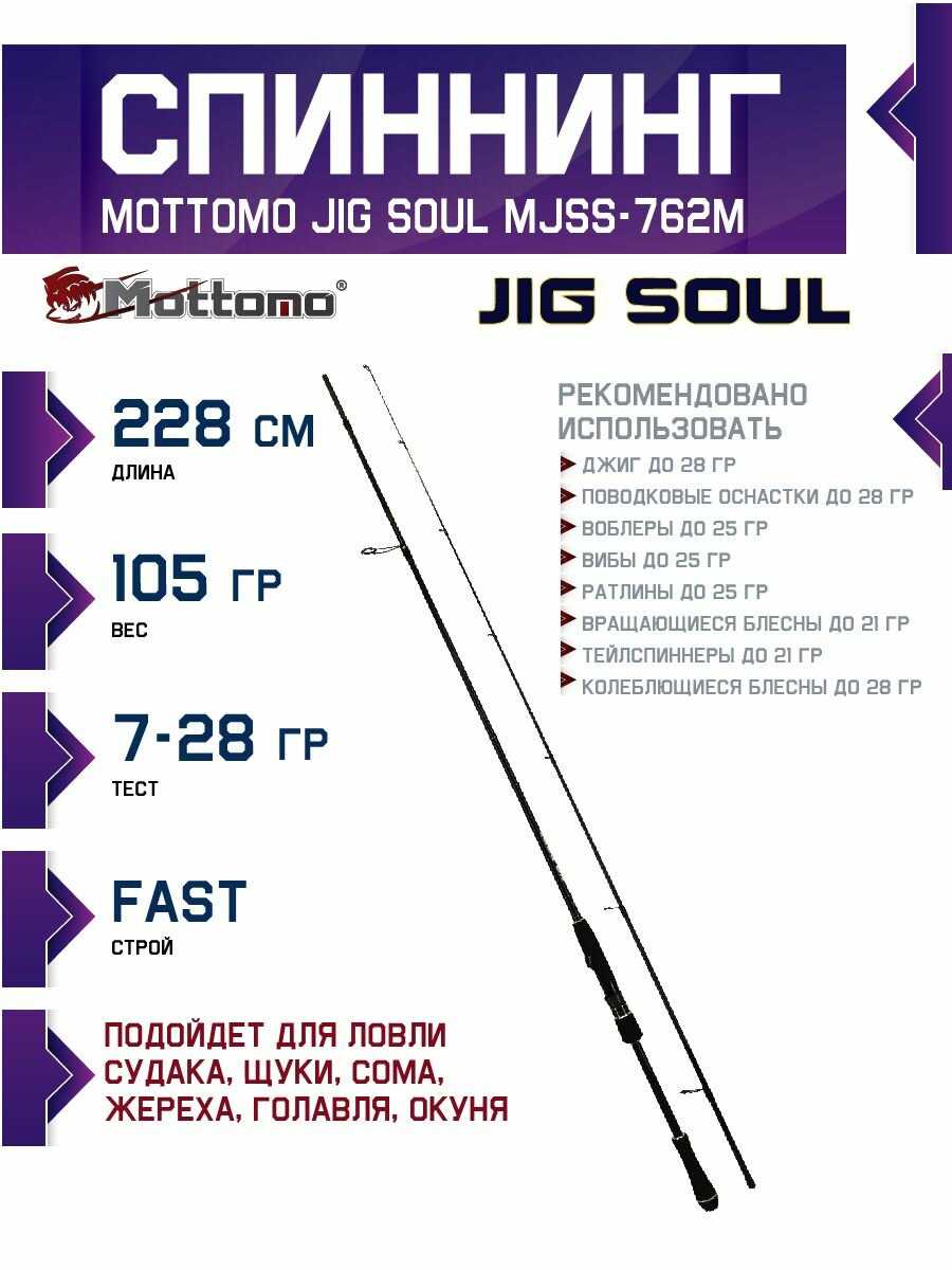 Характеристи Mottomo Jig Soul 762M (228см 7-28 г)