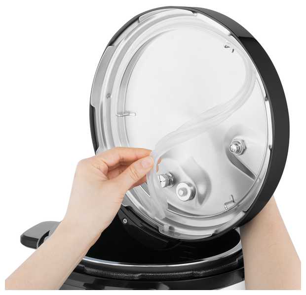 - Автоматическая блокировка крышки при наборе давления исключает случайное открытие.