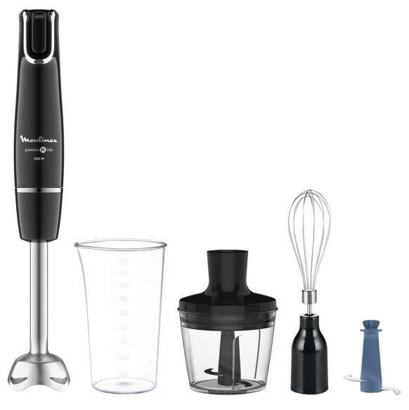 Moulinex DD878D10 — это мощный и многофункциональный погружной блендер, который идеально подходит для семей с детьми и любителей домашней кухни. Его ключевое преимущество — высокая производительность: двигатель 1000 Вт в сочетании с четырехлепестковым ножом справляется даже с жестким мясом и замороженными продуктами, обеспечивая идеально гладкую текстуру пюре, супов и соусов. Технология ActivFlow минимизирует разбрызгивание, а продуманная эргономика (прорезиненная ручка, интуитивная регулировка скорости) делает процесс готовки комфортным. Отдельного внимания заслуживают специализированные насадки: например, металлический диск для картофельного пюре позволяет отказаться от ручного толчения, а нож для льда открывает возможности для приготовления коктейлей.