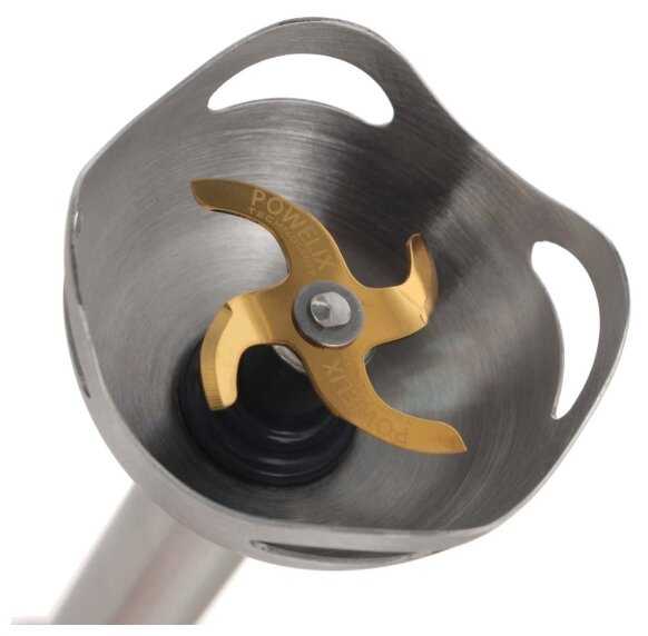 - Металлическая погружная часть и нержавеющие ножи с титановым покрытием устойчивы к коррозии и острые долго.