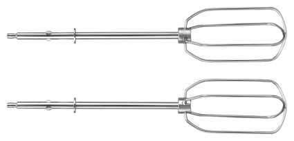 - В комплекте две насадки: венчики для взбивания и крюки для теста, что расширяет функционал.