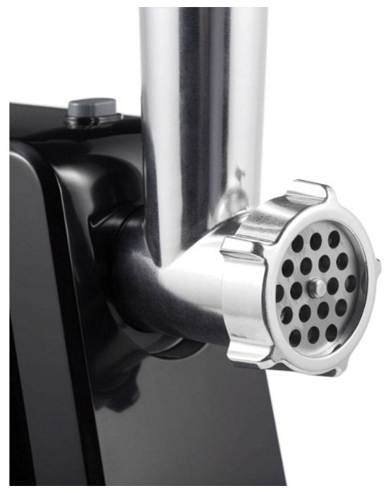 - Острый нож и две металлические решётки обеспечивают однородный фарш без «жёваных» кусочков.