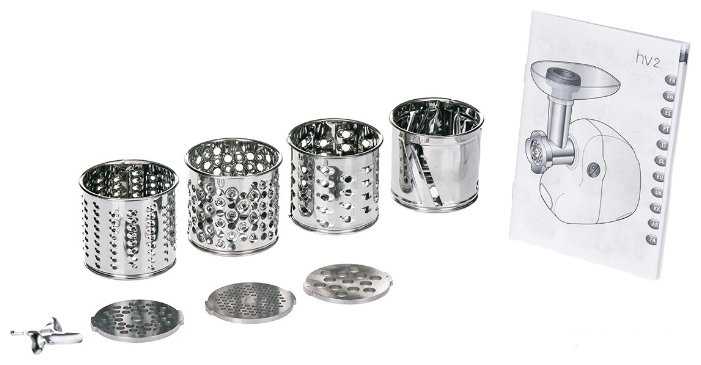 - 3 решетки (мелкая, средняя, крупная) для разной консистенции фарша.