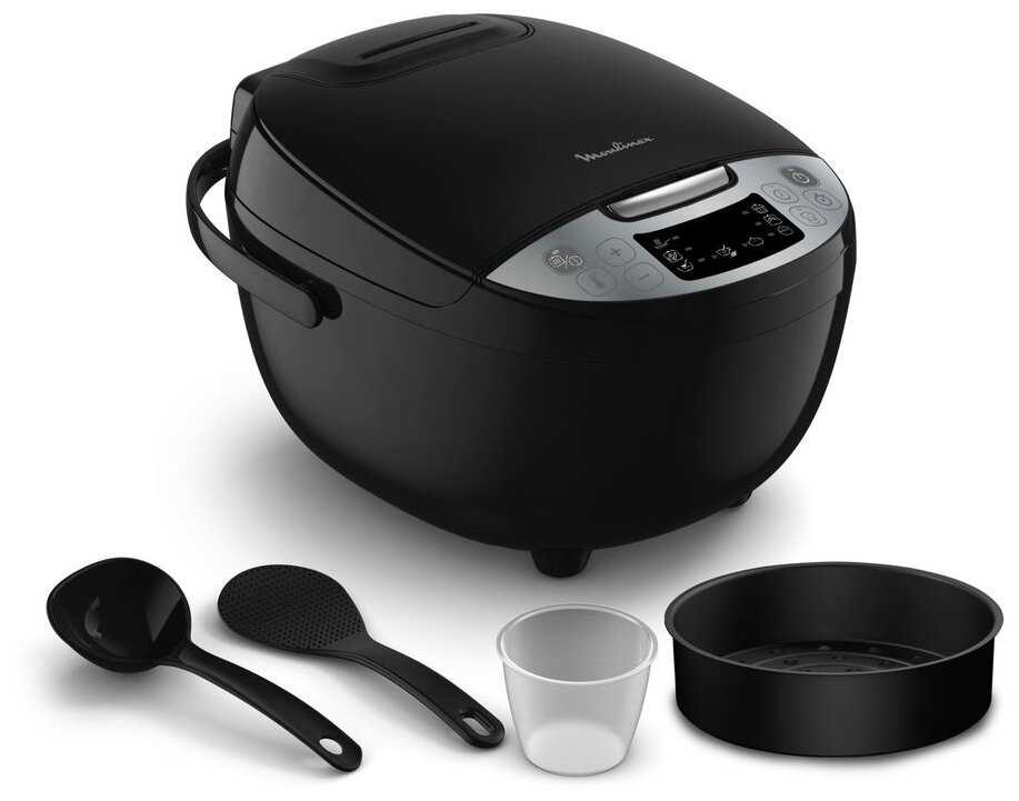 Стандартная комплектация включает: чашу с антипригарным покрытием, пластиковую корзину для пароварки, мерный стакан для круп, силиконовую лопатку и половник. Некоторые наборы дополнены книгой рецептов с базовыми инструкциями по программам. Дополнительные аксессуары (например, вторая чаша) продаются отдельно. -