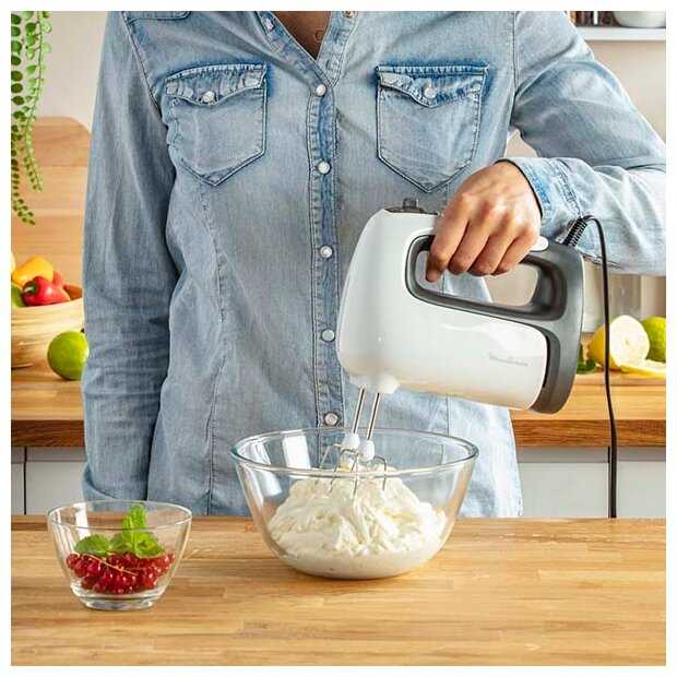 - Ручка с антискользящим покрытием удобно лежит в ладони, что снижает усталость при длительном взбивании.
