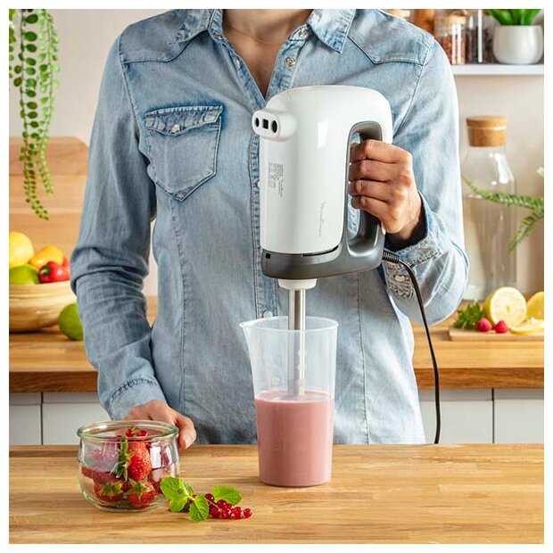 - Сбалансированный мотор минимизирует вибрации — при взбивании на максимальной скорости миксер не "прыгает" по столу.