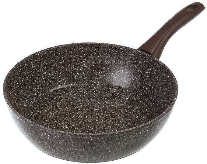 Заказывал через сайт, не беря в руки. Когда получил - показалось, что покрытие слишком шершавое, всё будет прилипать и плохо отмываться. Но оказалось, что я заблуждался: это отличная глубокая сковорода с хорошим покрытием. После мытья внутреннюю часть даже не нужно протирать - вода на ней не задерживается. Рекомендую к покупке.