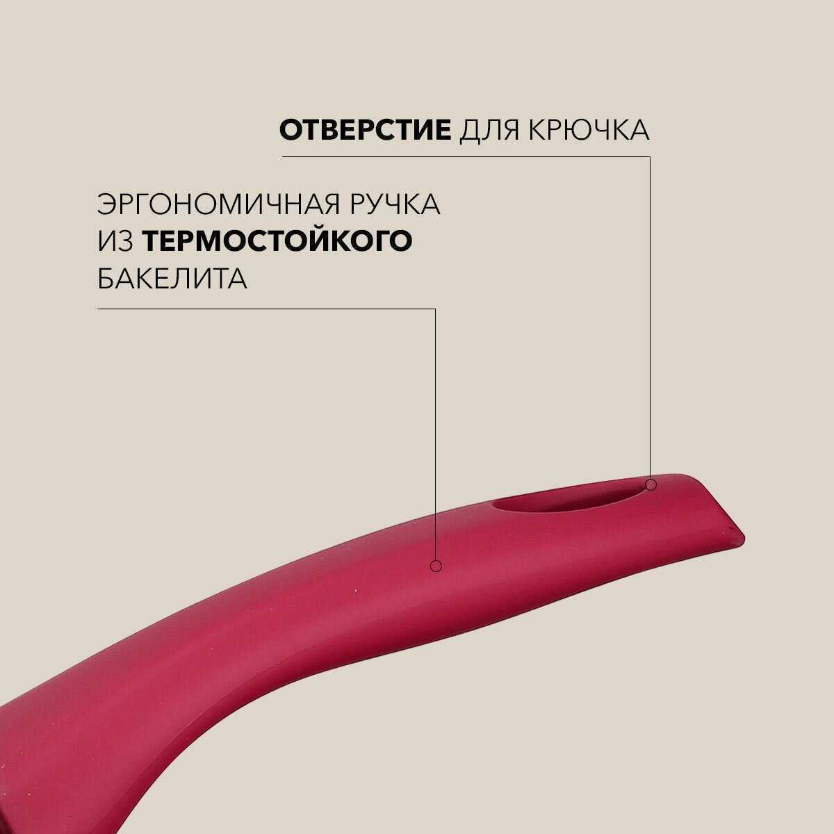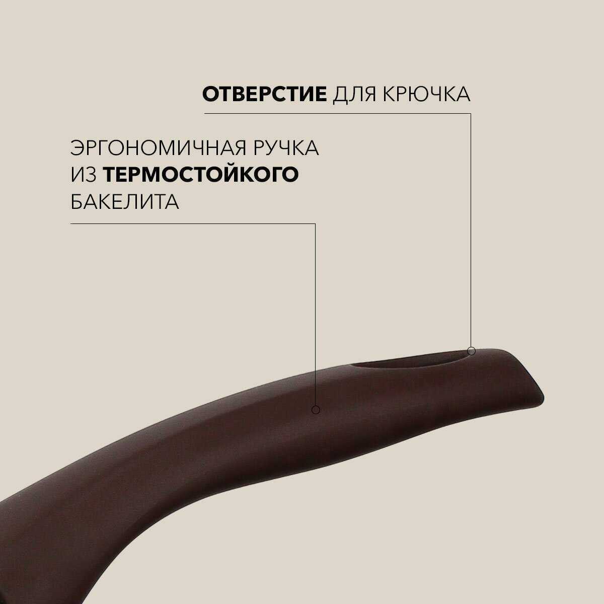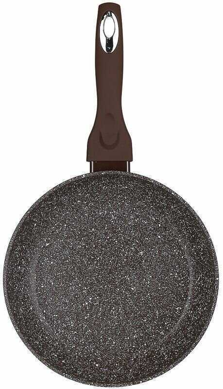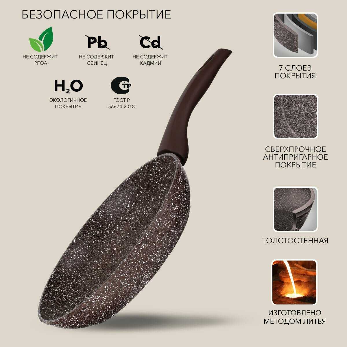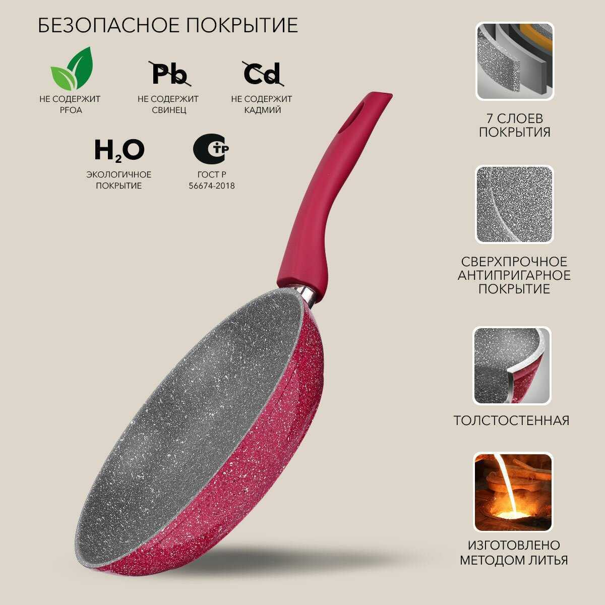 - Шероховатая текстура покрытия минимизирует скольжение продуктов, улучшая контроль при жарке и снижая риск повреждений от металлических лопаток.