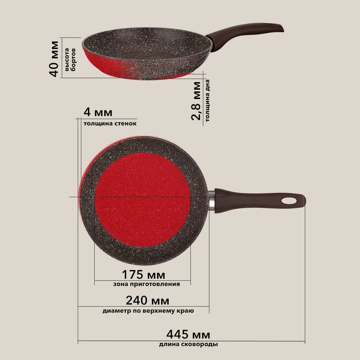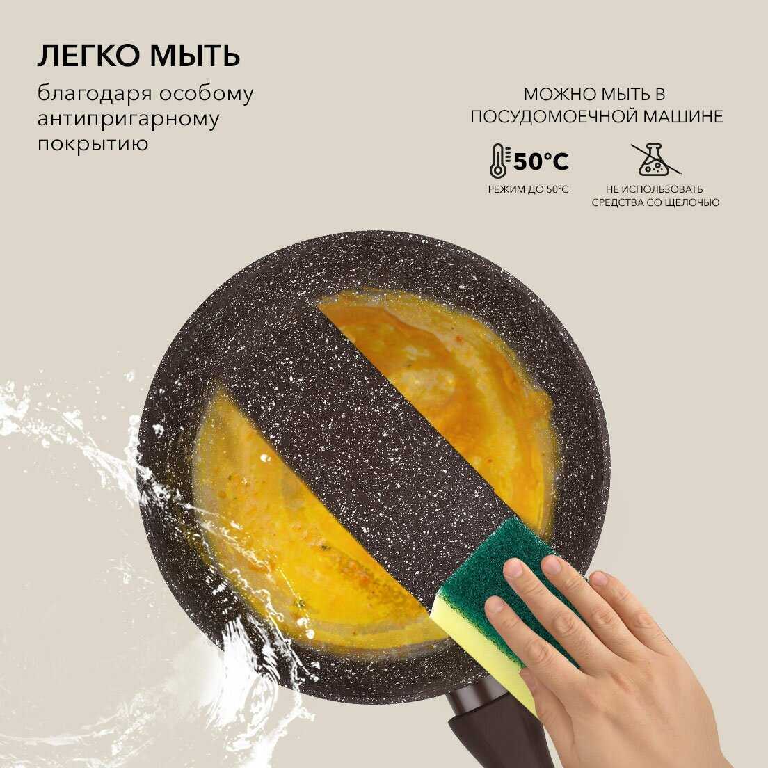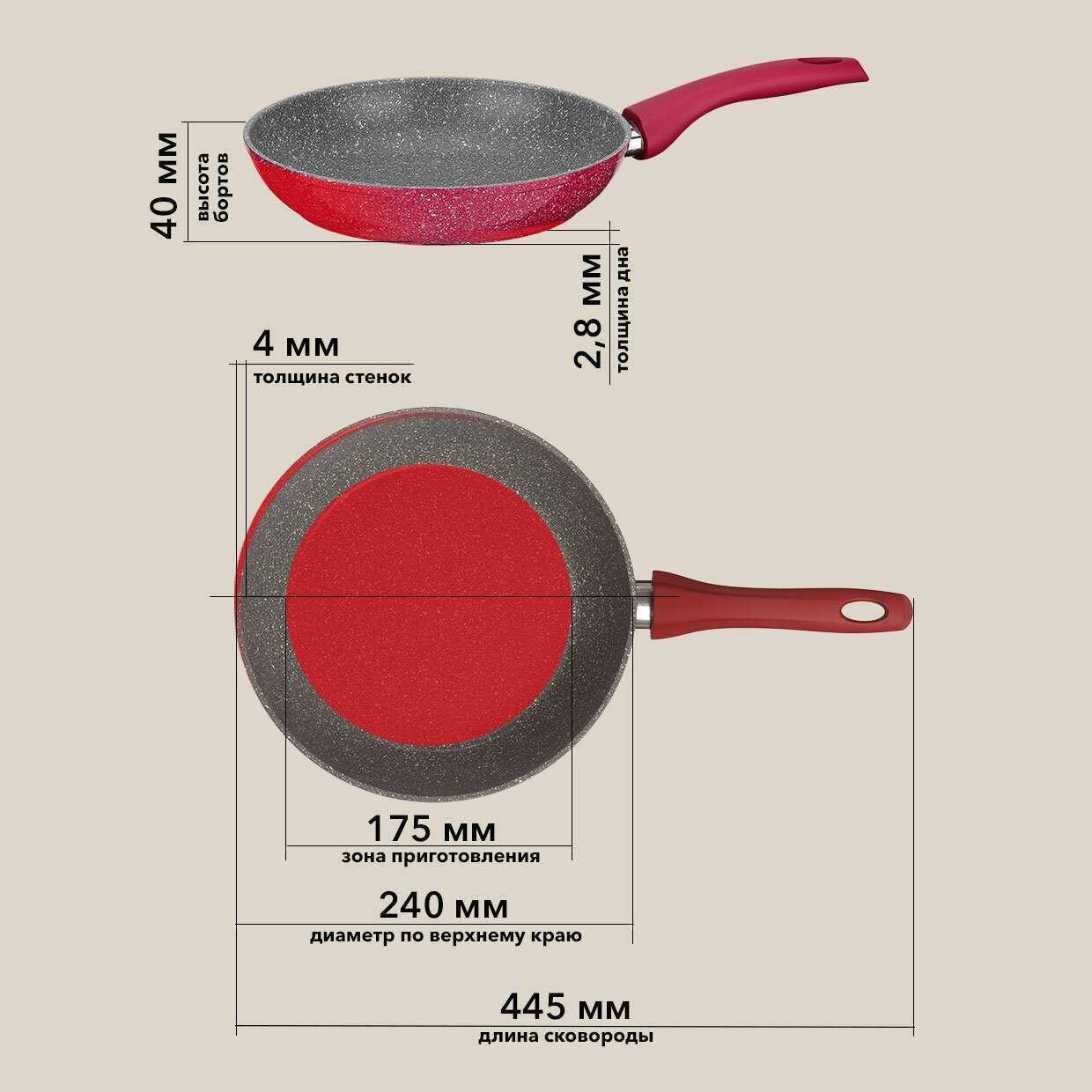 Идеальные сценарии применения Сковорода идеальна для тушения и жарки с умеренным нагревом благодаря высоким бортам и быстрому теплосъёму. Размеры 24-28 см признаны наиболее универсальными ("26 см – золотая середина"). Для блинчиков лучше выбрать специализированную модель с низкими стенками. Категорически не подходит для экстремального нагрева: при температуре свыше 200°C покрытие деградирует, появляются термические пятна. Оптимальна для ежедневного использования без металлических аксессуаров и абразивных моющих средств.