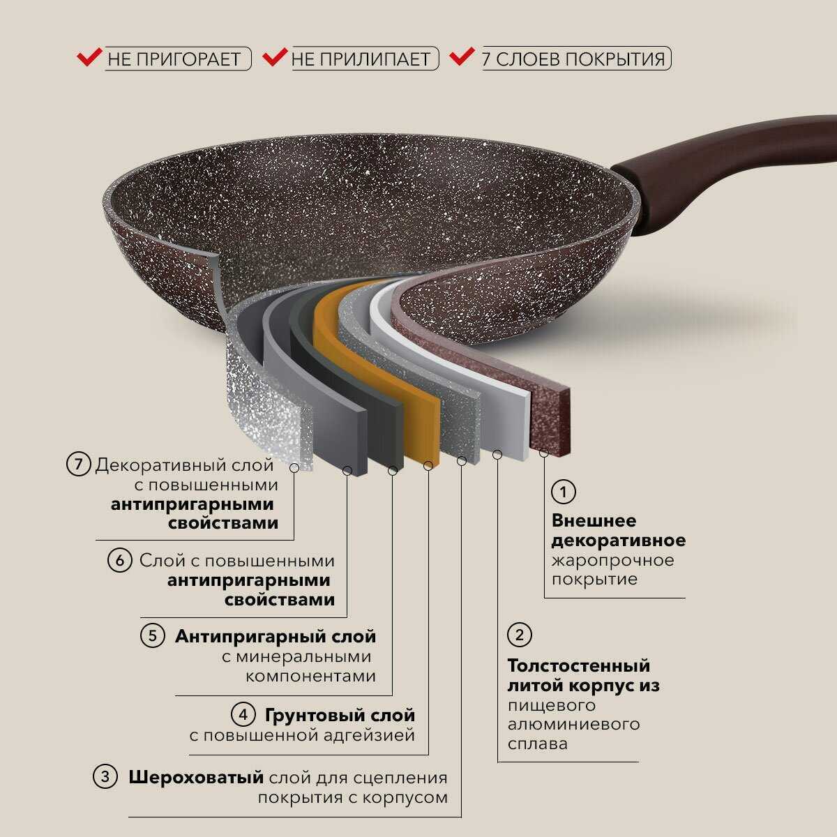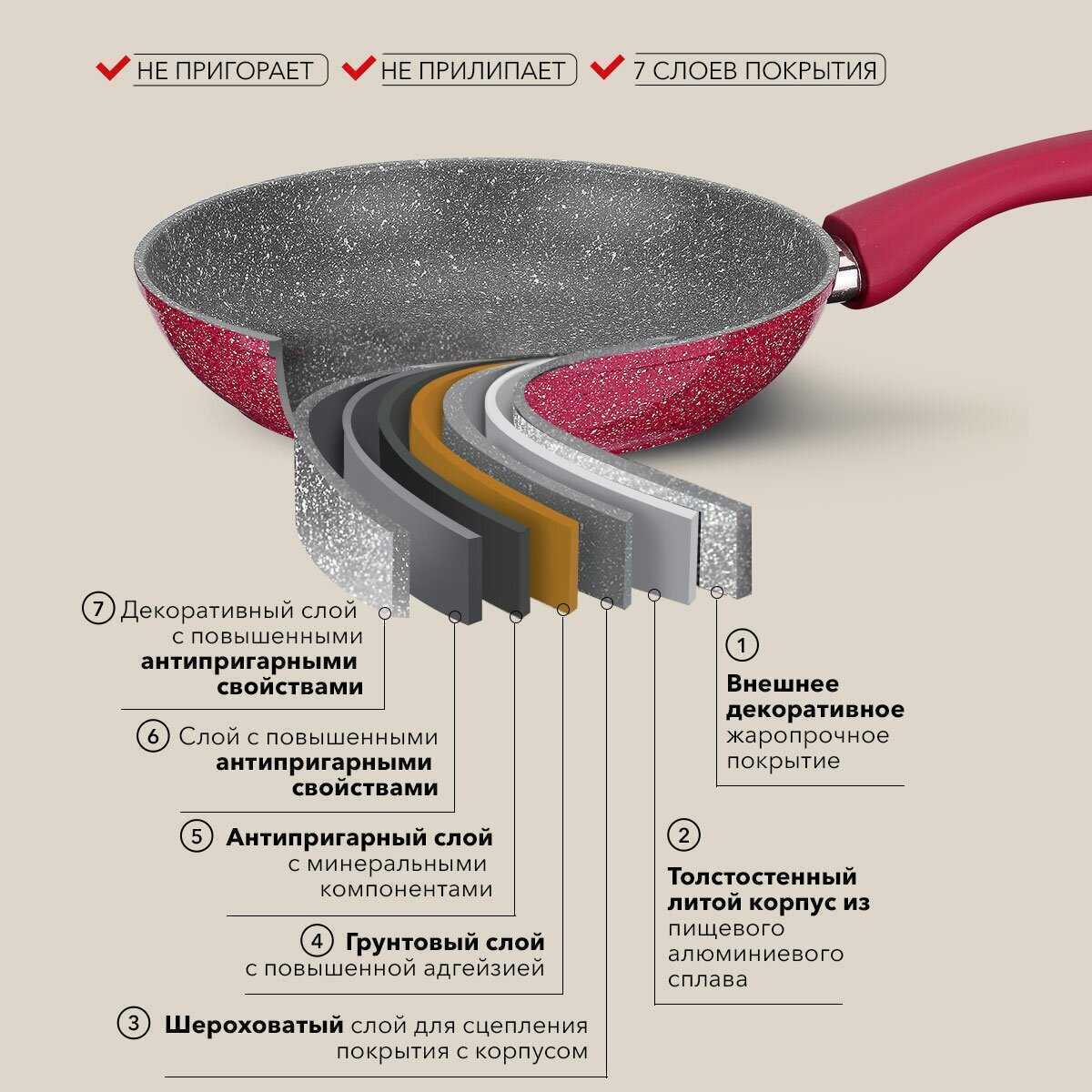 - Антипригарное покрытие обеспечивает равномерный нагрев без пригорания: