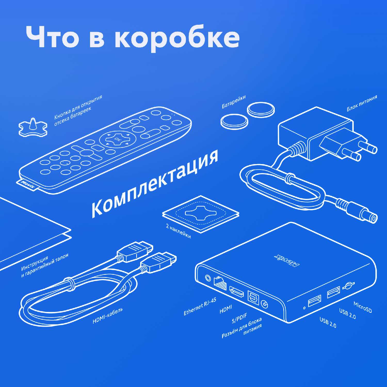 - Интуитивный интерфейс с пошаговыми подсказками на экране ТВ.