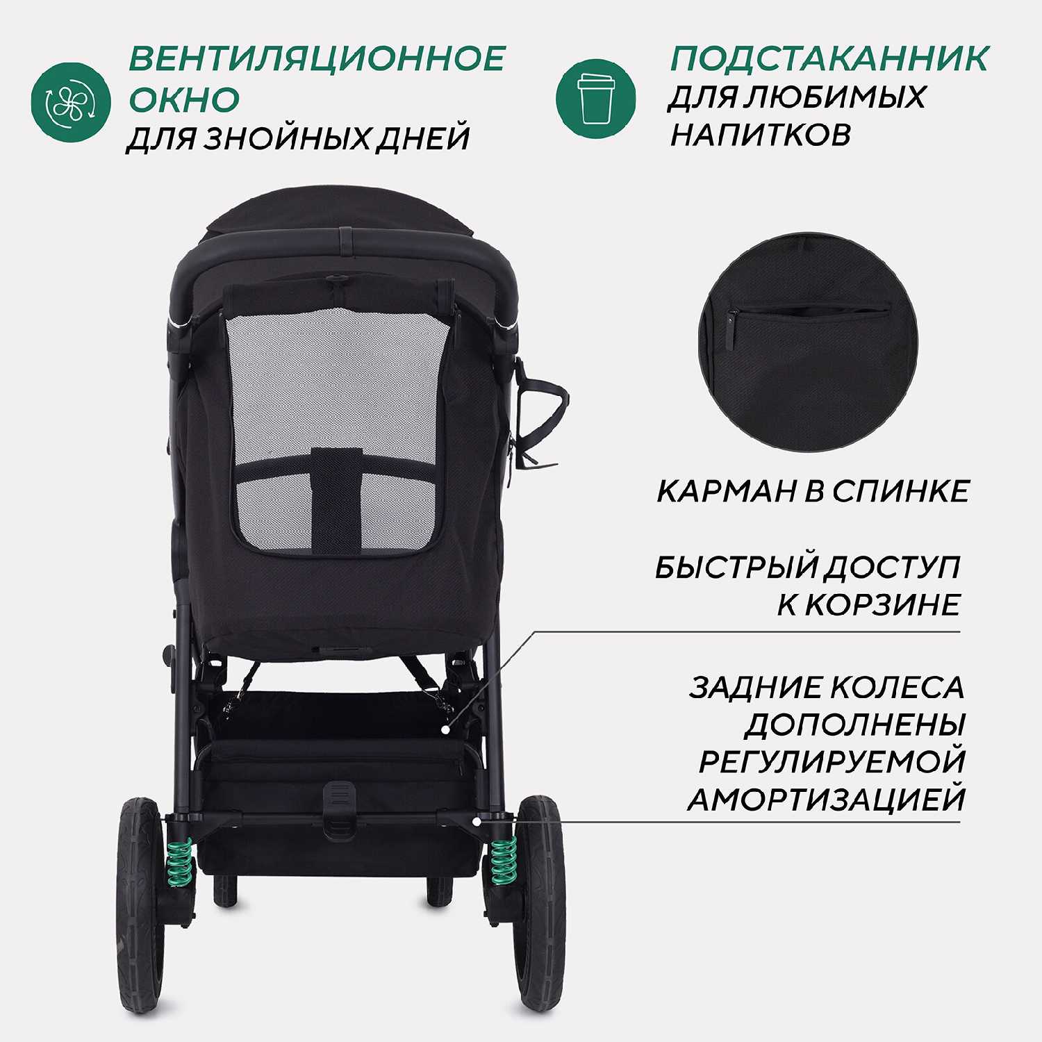 - Доступ к корзине блокируется при опущенной спинке коляски.