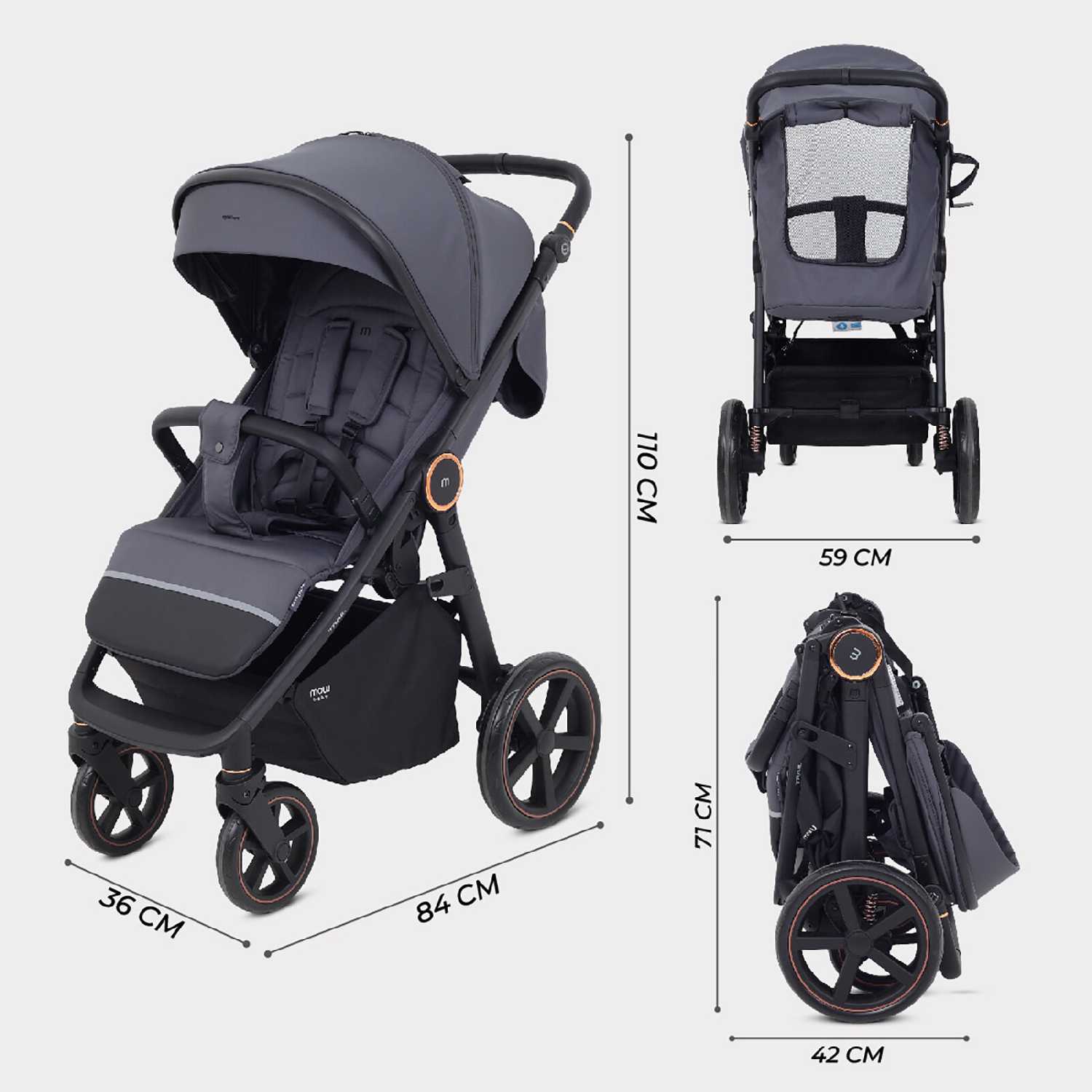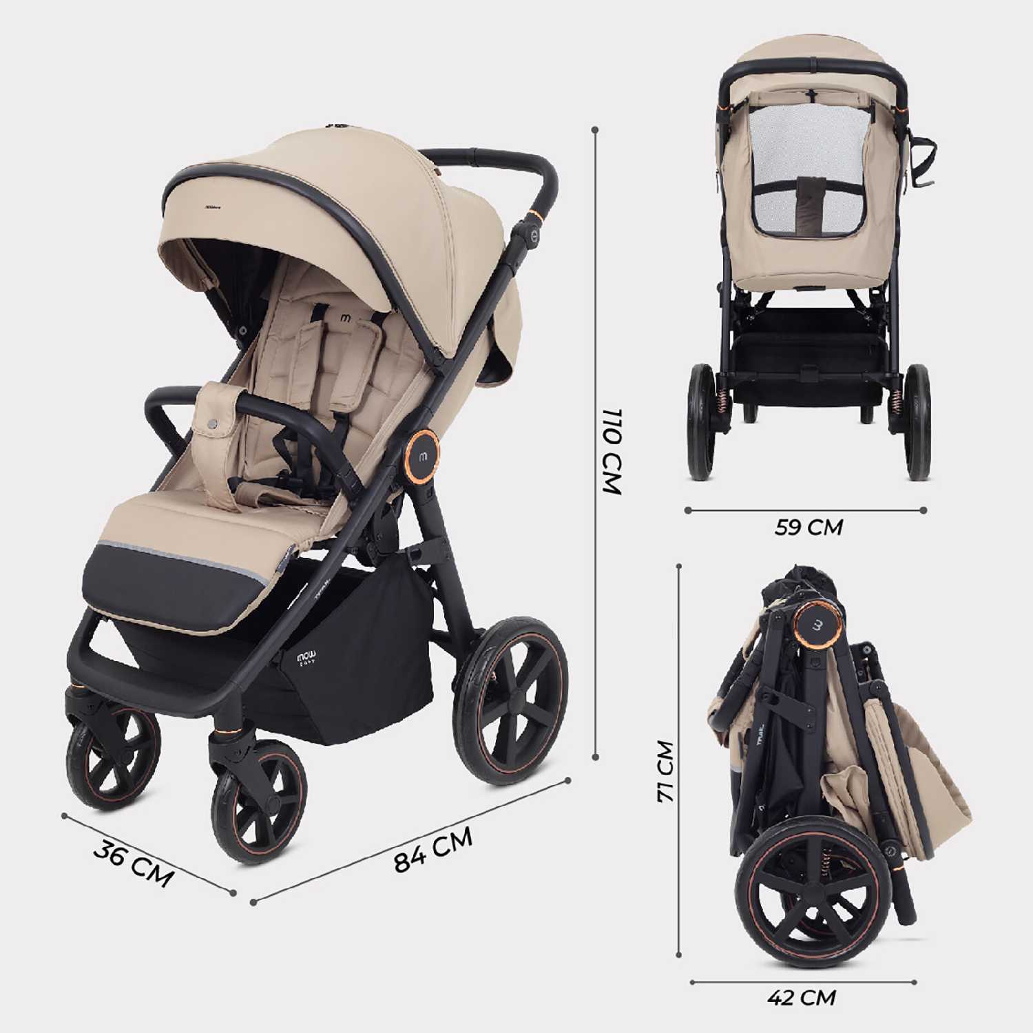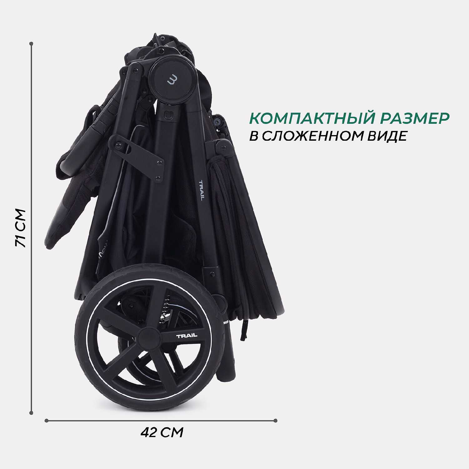 - Механизм складывания «книжкой» позволяет уменьшить габариты коляски на 60%.