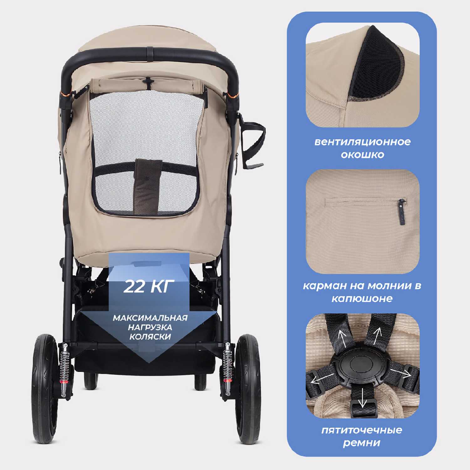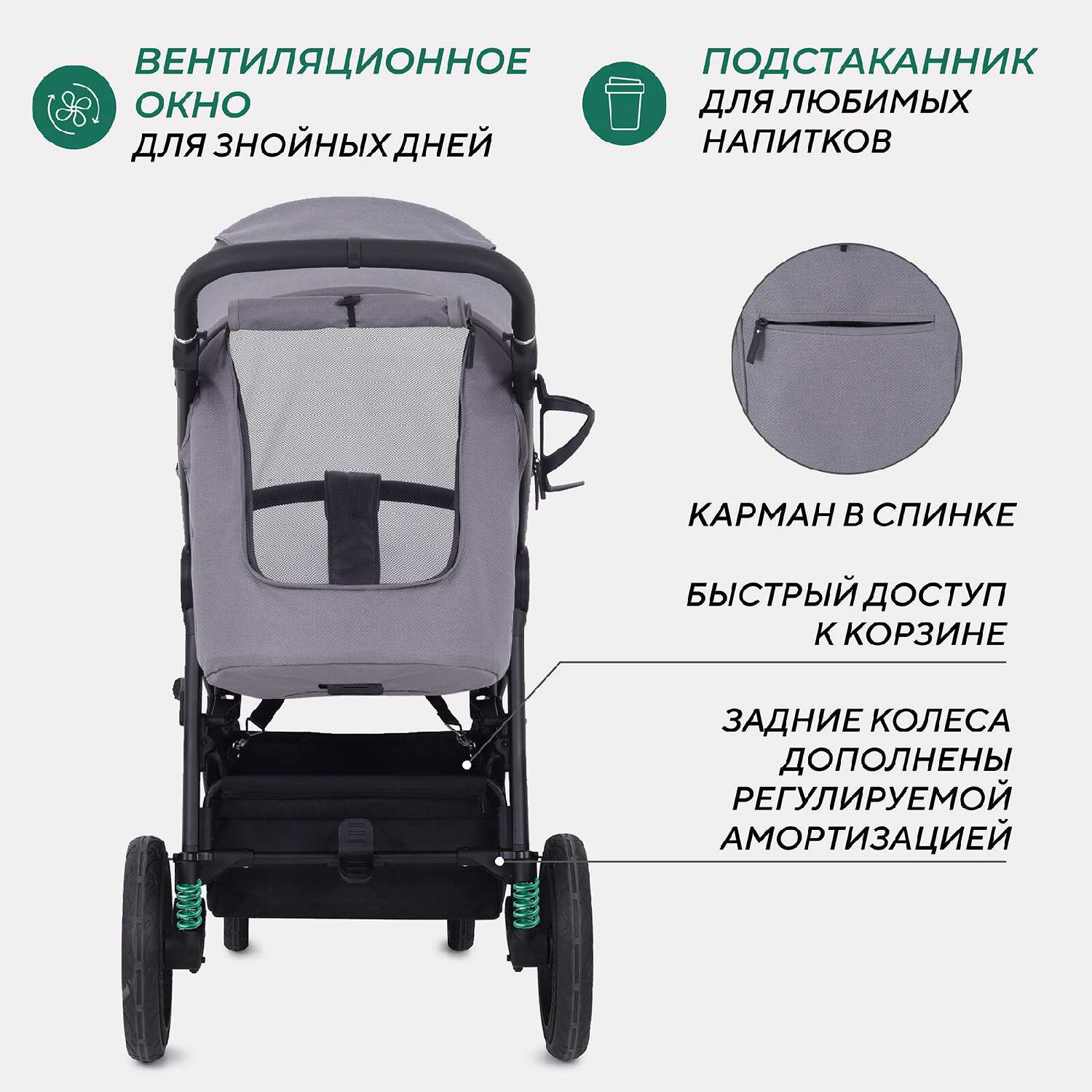 Коляска демонстрирует отличную проходимость на асфальте и в парковых зонах благодаря большим гелевым или резиновым колесам. На грунтовых дорогах и ухабистых участках возможна тряска, так как амортизация, хотя и присутствует на всех колесах, не всегда гасит сильные колебания. При преодолении бордюров или препятствий рекомендуется приподнимать передние колеса, чтобы избежать опрокидывания. -