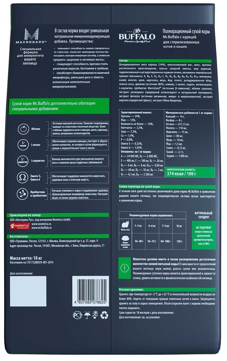 Отзывы о Корм для кошек Mr.BUFFALO Sterilized с курицей