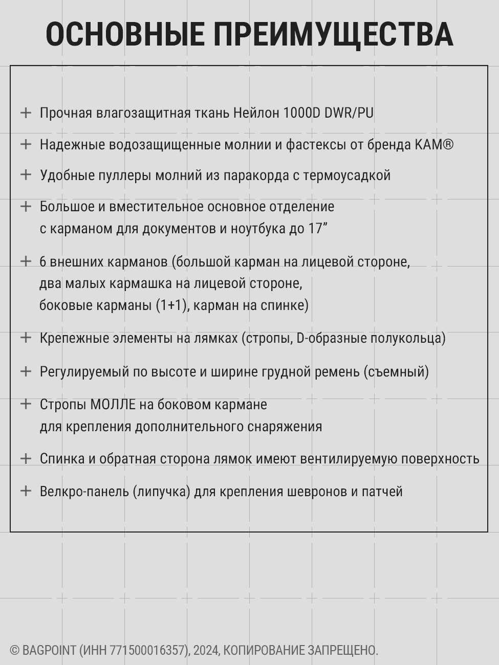 Пользуюсь полгода, как рабочий рюкзак для ноутбука , инструмента, документов, образцов. Вместительный и прочный. До этого пользовался бюджетными рюкзаками каждый год менял - не выдерживали веса. Дополнительно можно оснастить разными держателями для питьевой воды, термоса и т.д.(приобретается отдельно). Планирую использовать для путешествий на природу.