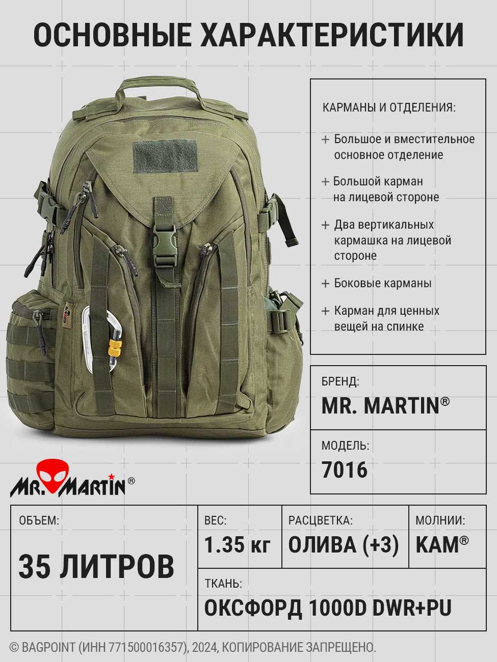 Характеристи Mr.Martin Рюкзак тактический (7016)