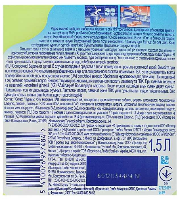 104 отзывов пользователей o Mr. Proper Моющее средство Классический Лимон