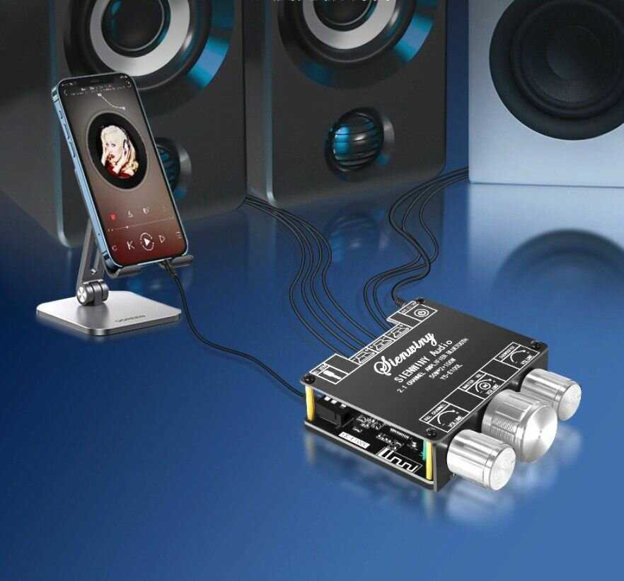 очень советую тем, кто делает акустику для дома, гаража и тп. подключение к блютуз за секунду или даже меньше, качество звука на высоте. Подключать сабвуфер по сопротивлению желательно меньше 4-х Ом, а динамики больше 4-х Ом и будет классно. Если выключать усилитель, а питание оставлять, то блютуз не отключается, из-за этого не надо каждый раз ждать подключения. Дешёвые автомобильные динамики не стоит к ним подключать, если будете слушать громко, они не вывезут и сгорят, та же тема с сабвуферами из домашнего кинотеатра