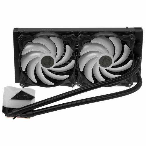 - Радиатор 280 мм с двумя вентиляторами 140 мм создаёт достаточный воздушный поток (до 84.36 CFM).