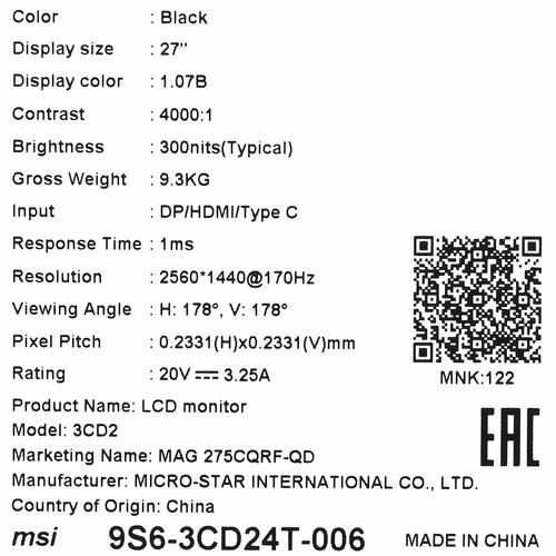 Отзывы о Монитор MSI MAG 275CQRF-QD