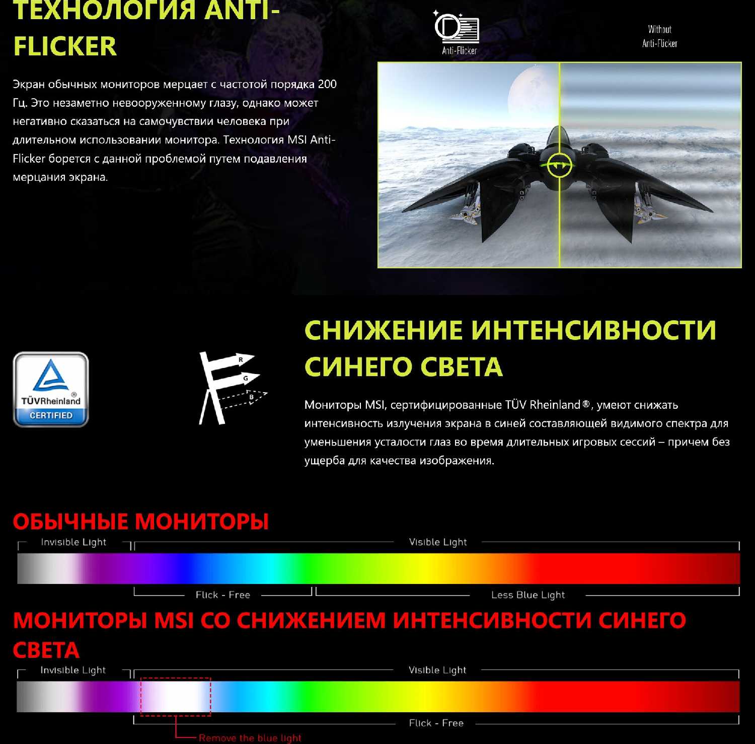 - Технология Flicker-Free устраняет мерцание подсветки на низкой яркости.