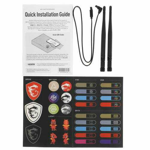 Комплектация : | антенна Wi-Fi, документация, кабель SATA, комплект наклеек |