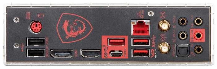 Разъемы на задней панели : | 2 x USB 2.0 Type-A, 3 x USB 3.2 Gen1 Type-A, DisplayPort, HDMI, LAN RJ-45, PS/2 (клавиатура/мышь), SMA (для антенны Wi-Fi), Thunderbolt 3 Type-C, USB 3.2 Gen1 Type-C, выход S/PDIF оптический |