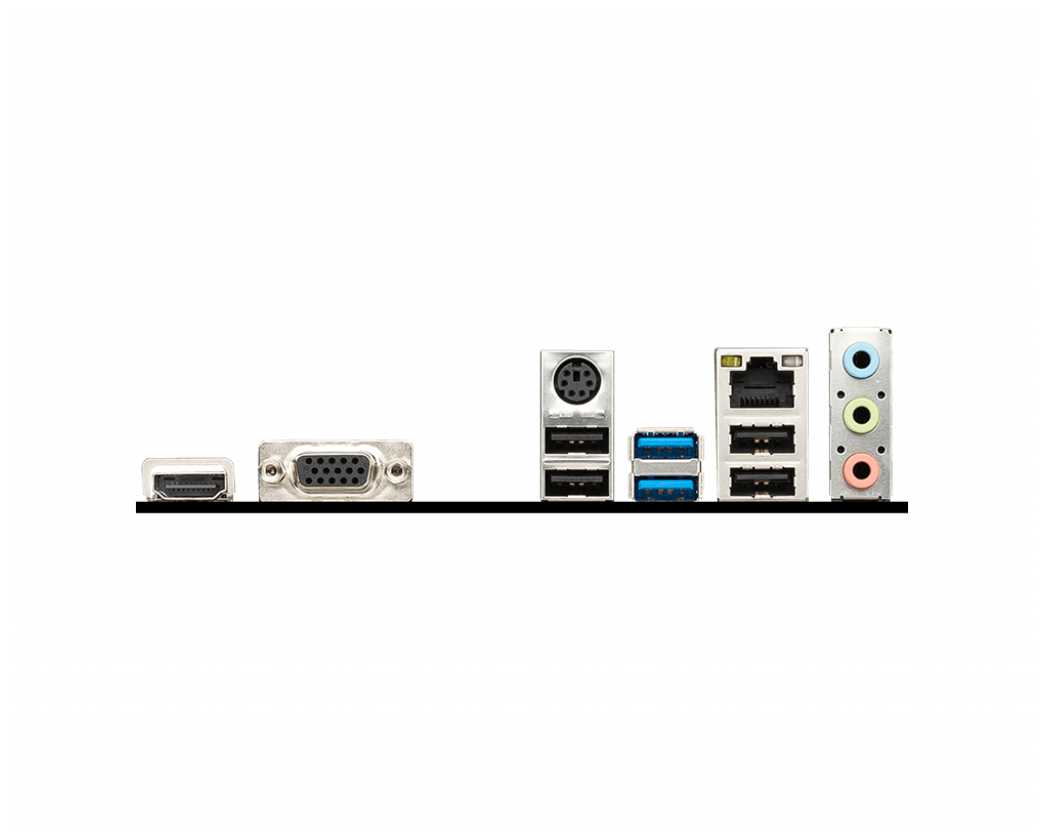 Разъемы на задней панели : | 2 x USB 3.2 Gen1 Type-A, 4 x USB 2.0 Type-A, 4 x USB 3.2 Gen1 Type-A, DisplayPort, HDMI, LAN RJ-45, PS/2 (клавиатура/мышь), PS/2 (мышь), VGA |