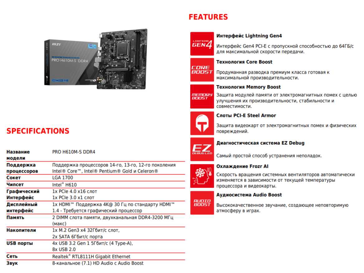 11 отзывов пользователей o MSI PRO H610M-S DDR4