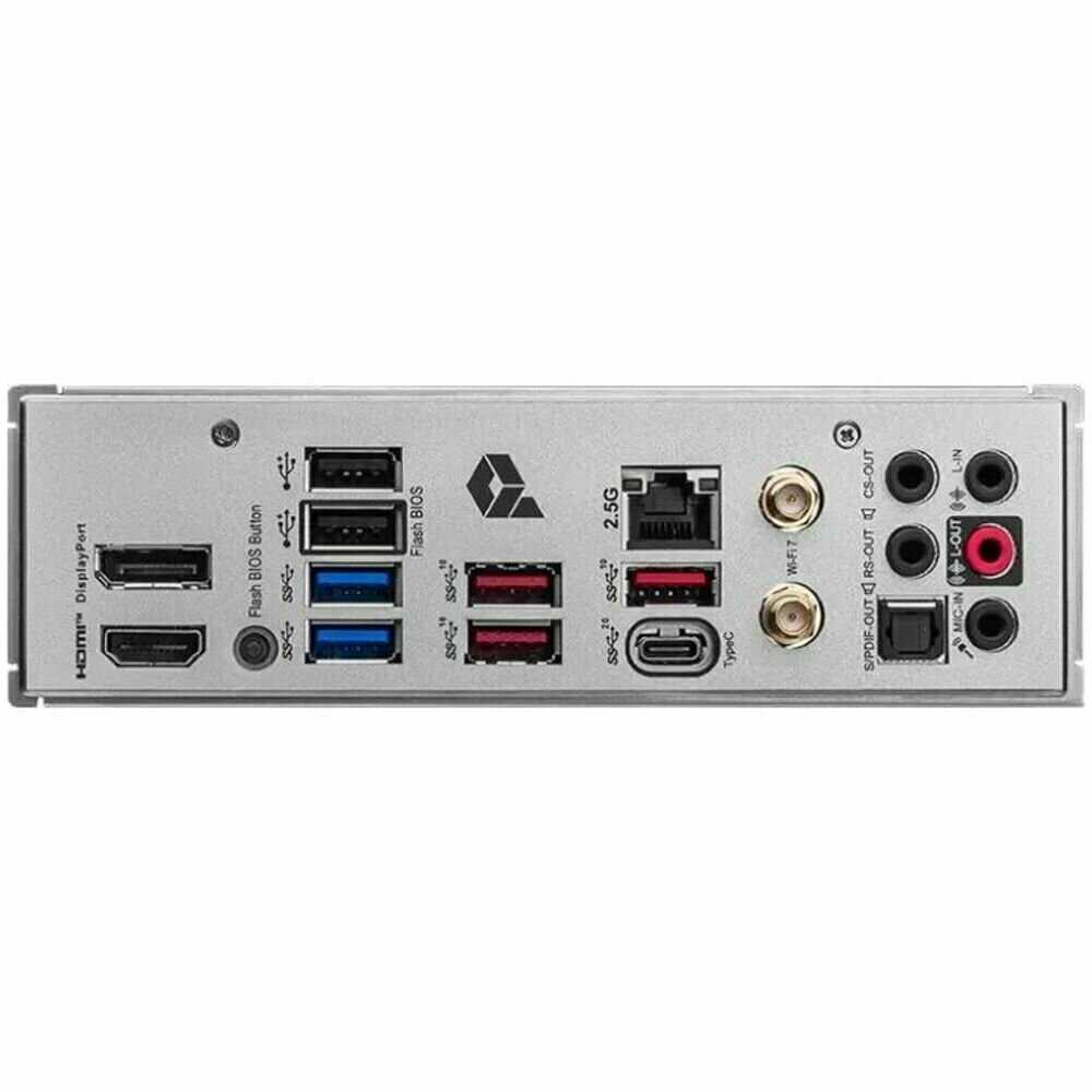 | Разъемы на задней панели : | 2 x SMA (для антенны Wi-Fi), 2 x USB 2.0 Type-A, 2 x USB 3.2 Gen1 Type-A, 2 x USB 3.2 Gen2 Type-A, 5 x USB 3.2 Gen1 Type-A, DisplayPort, HDMI, LAN RJ-45, SMA (для антенны Wi-Fi), USB 3.2 Gen1 Type-C, USB 3.2 Gen2x2 Type-C, выход S/PDIF оптический |