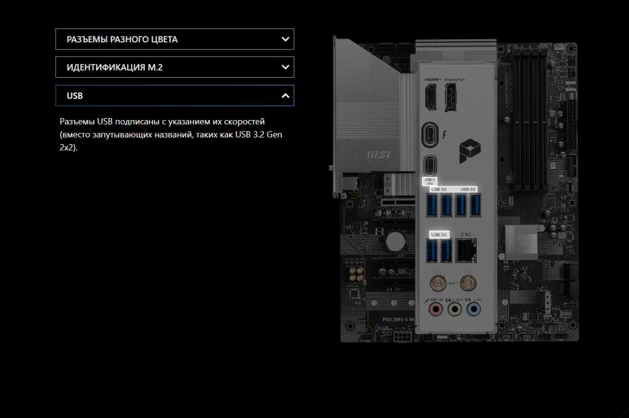 USB подробно : | 2 x USB 3.2 Gen1 Type-A, 3 x USB 3.2 Gen2x2 Type-C, 4 x USB 2.0 Type-A, 8 x USB 3.2 Gen1 Type-A, USB 3.2 Gen2 Type-C, USB 3.2 Gen2x2 Type-C |
