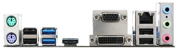 Разъемы на задней панели : | 2 x USB 3.2 Gen1 Type-A, 4 x USB 2.0 Type-A, DVI, HDMI, LAN RJ-45, PS/2 (клавиатура), PS/2 (мышь), VGA |