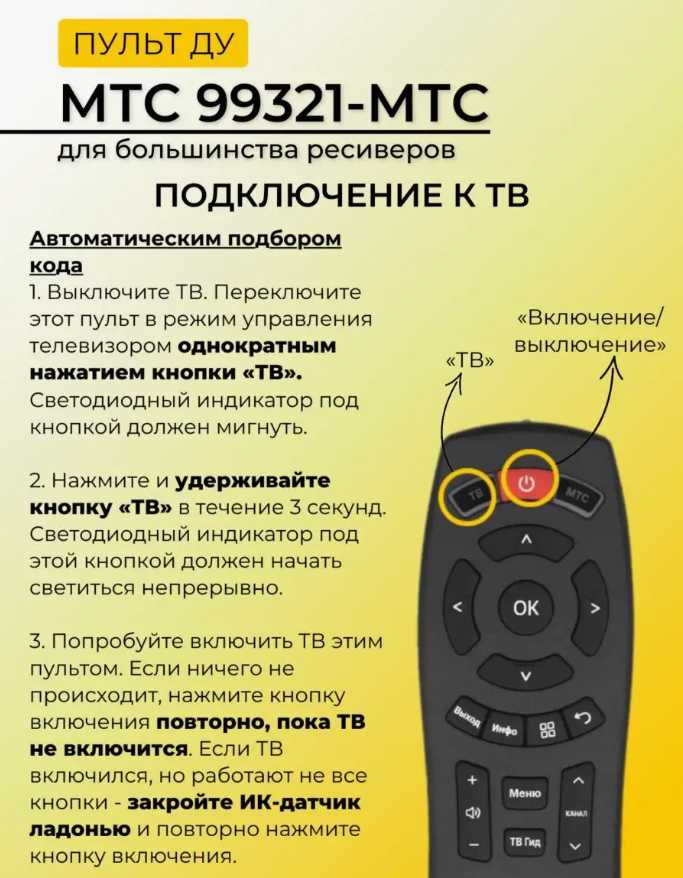 Настройка пульта ДУ : | автоподбор кода, ввод кода |