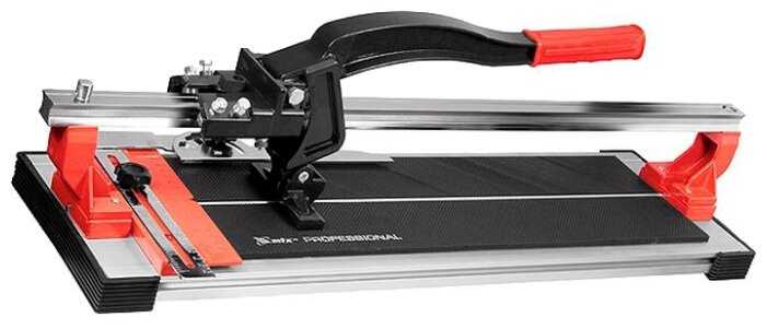 - + Хороший плиткорез,формат под 60 брал с запасом,полоски в три см нарезал спокойно ,после черепашкой доработаю