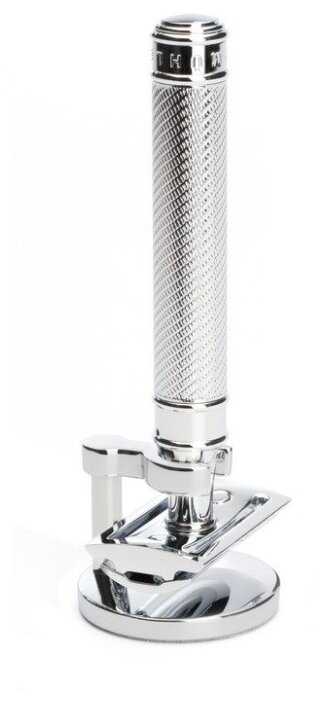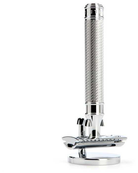 - + Минималистичность, дизайн в стиле классической бритвы от Muhle. Приятно ощущается вес изделия, т.к. сделано из сплава.