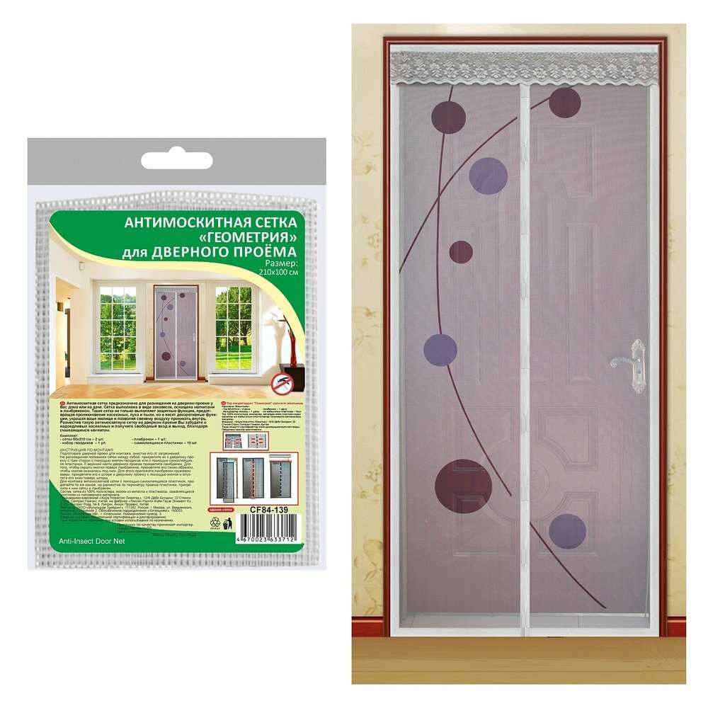 | Дополнительная информация : | В комплект входят: сетка 50х210 см – 2 шт., ламбрекен – 1 шт., набор кнопок – 1 шт., самоклеящиеся пластинки – 10 шт. Состав: сетка из 100% полиэстера кнопки из металла и пластмассы самоклеящиеся пластинки из полимерного материала. Подходит для дверного проёма размером 21х1 м. |