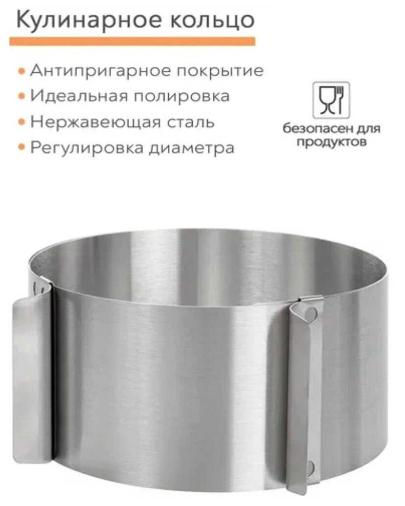 Целевая аудитория и рекомендацииПродукт оптимален для домашних кулинаров, увлекающихся оформлением блюд, и начинающих кондитеров. Профессионалы могут использовать его как бюджетную альтернативу специализированным формам для подачи. Для выпечки стоит рассматривать только при работе с плотным тестом либо комбинировать с пергаментом и подложками. При покупке рекомендуется сразу проверить плавность хода механизма и качество обработки краёв. Дополнительный совет — использовать силиконовые коврики под кольцо для минимизации протечек. Несмотря на отдельные конструктивные недоработки, продукт получает высокие оценки за многофункциональность и экономию пространства, заменяя до 5–6 стандартных форм.