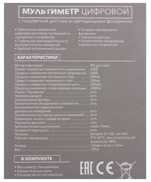 TUNDRA Мультиметр CONSTRUCTIONE, DT-830B, ACV/DCV, DCA, 200-2МΩ