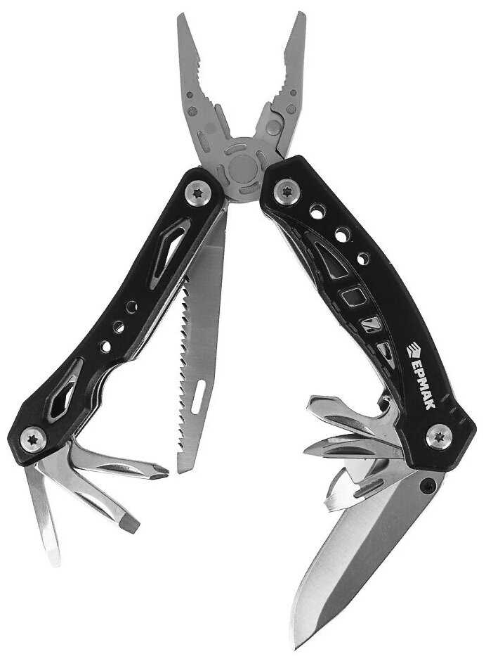 7/10 балловЕРМАК Многофункциональный инструмент ермак, 11 функций, нержавеющая сталь / Мультитул универсальный 118-169 / Нож складной, пассатижи, отвертка