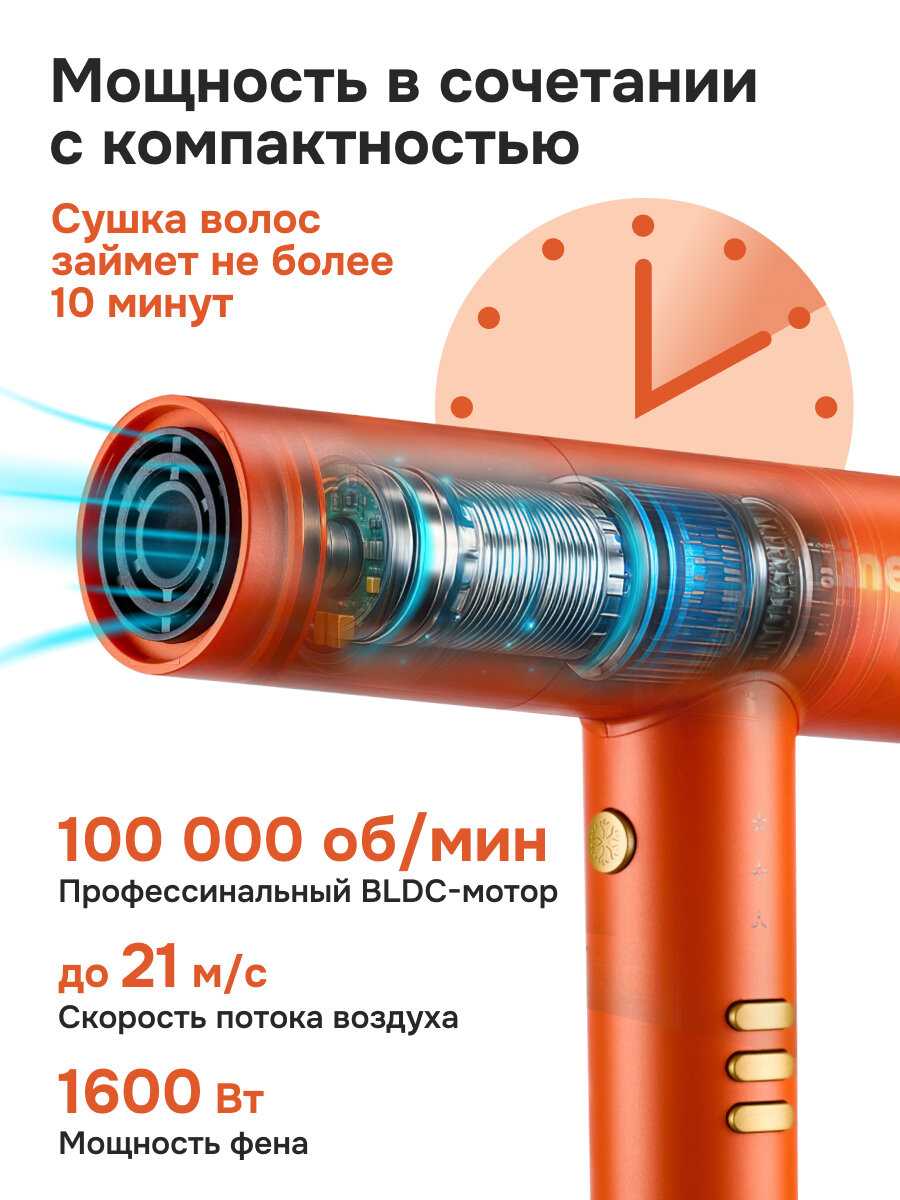 - + Предусмотрены комбинации для настройки индивидуальной комфортной сушки волос.