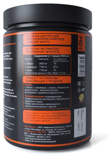 Основной ингредиент : | валин, изолейцин, лейцин |