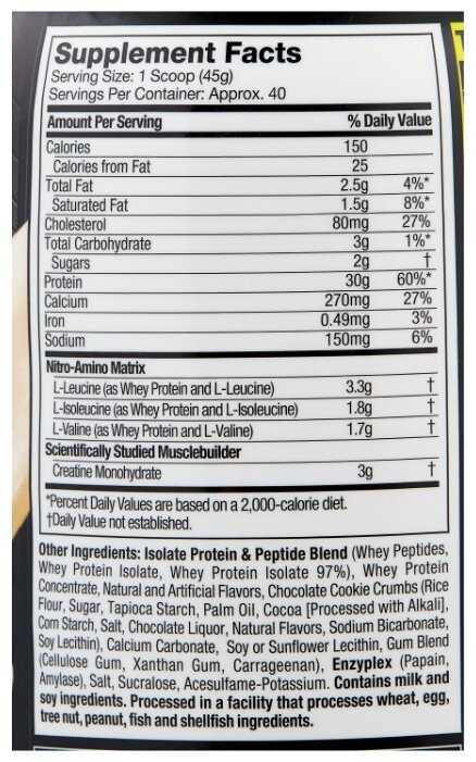 - + Отличный изолят. До этого пробовал других производителей, реакция организма была не однозначная. Нитро лучший, молочный шоколад по вкусу нравится больше. Соотношение компонентов на одну порцию идеален.